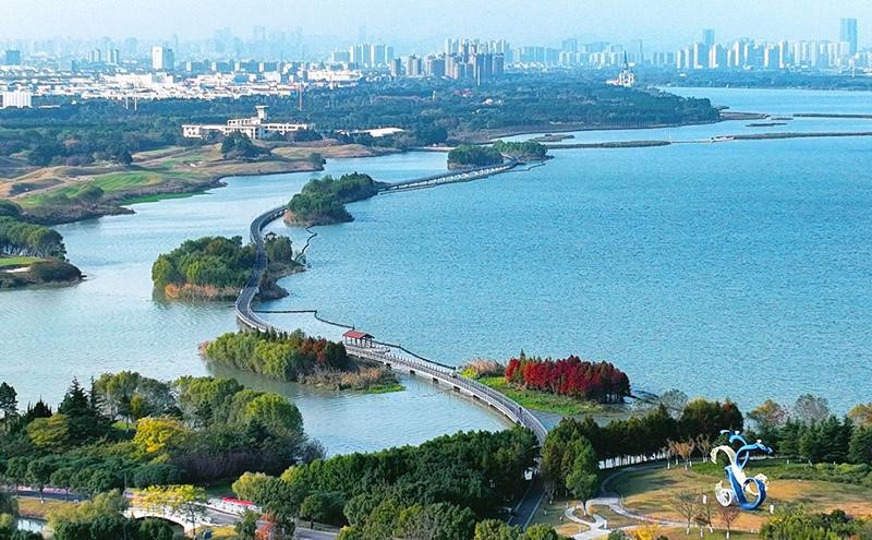 作為水鄉(xiāng)上崛起的現(xiàn)代化新城,園區(qū)河流縱橫、水網(wǎng)密集,擁有金雞湖、獨墅湖、陽澄湖等骨干河流,湖面與周邊錯落的生態(tài)景觀帶相映成趣,勾勒出了一幅“人水和諧”的生態(tài)畫卷。