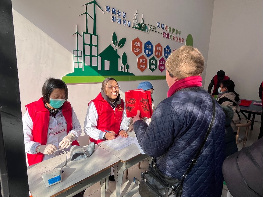 活動當天,社區志愿者與醫院志愿者早早抵達現場,化身公益服務的“暖心使者”。志愿者們分工明確、默契配合,大家協助布置診療設備、鋪展紅紙筆墨,全力保障各服務環節順暢運轉。從場地布置到現場引導,用忙碌的身影與真誠的笑容,筑牢活動保障線。