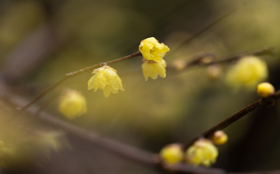 除了粉梅,園內(nèi)嫩黃的臘梅也競相綻放,星星點點棲于枝頭,寒風中盡顯生機。深吸一口,清冽幽香漫入鼻腔,驅(qū)散寒意,只留滿心舒暢,為家門口的景致添了幾分暖意。