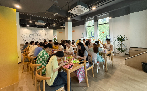 古婁一村社區(qū)以文娛活動為紐帶,增強集宿區(qū)的凝聚力與向心力。一是打造多元運動與休閑空間,建設青年人才之家、活動中心、健身房,室外空間打造健身步道、籃球場、兒童游樂區(qū)及景觀花園等設施,構建起集運動健身、休閑娛樂于一體的多功能共享空間,為集宿區(qū)青年職工營造舒適宜居的社區(qū)環(huán)境。二是開展輕松解壓的娛樂活動,組織籃球比賽、集體觀影、環(huán)保主題活動等系列活動,兼顧競技性、趣味性與社交性,讓來自五湖四海的青年在歡聲笑語中打破陌生,在互動協(xié)作中收獲友誼。三是開展“澄意100×星光夜學社”青年夜校項目,課程類型豐富,覆蓋身心需求,包括健身、瑜伽、書法、拳擊、攝影、美妝、收納等12種課程,累計開展特色課程120多節(jié),實現(xiàn)夜校課程全年覆蓋,滿足不同青年的個性化偏好,適配多樣生活場景。