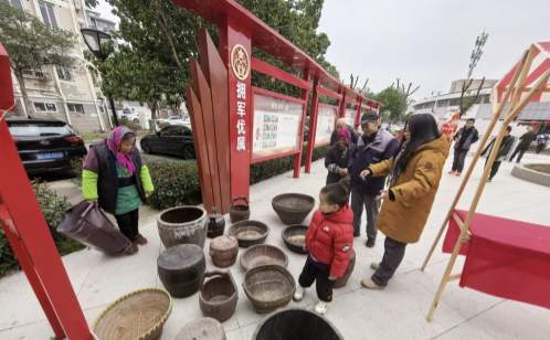 展陳區的另一側,舊物新生案例展則以創意十足的改造作品傳遞環保理念。塑料瓶變身精致花盆、廢舊衣物織成實用購物袋、傳統懷舊物品展示……這些由居民親手制作的成品,不僅展現了舊物改造的無限可能,更激發了居民對明年舊物兌換項目的期待。社區“紅色管家”志愿者現場講解改造過程,并邀請居民在集章卡上打卡留念,為活動增添了一份儀式感。