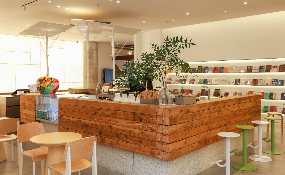 店內中心的飲品吧臺區,不管是精品咖啡還是原葉中國茶,每一款飲品都標注著原料產地、烘焙程度、風味特點等等說明,不僅讓閱讀、辦公之余增添一份醇香滋味,更成為咖啡、茶文化的一個傳播出口。吧臺周邊分布著大大小小的閱讀洽談區、半封閉的私密靈感空間、可切換開放/封閉模式的活動區,這些巧心規劃的功能區,也讓書店成為靜心閱讀的理想地、深度思考的發生場和文化服務的主陣地。