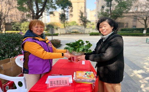 在馨悅社區廣場,環保志愿者組織開展了“書香換花香”主題活動,居民憑三本閑置圖書,即可兌換一盆綠蘿。社區旨在通過“以物換物”的形式,將“潔凈家園”的理念融入日常生活中。