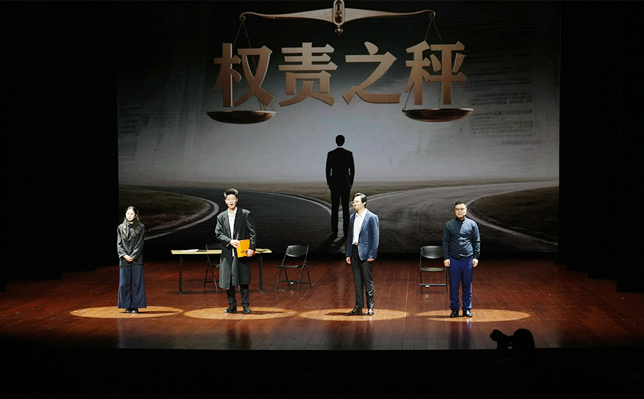 “何以為秤?人心為星,清流為砣,稱的是貪廉一念,量的是家國千秋……”隨著說書人的娓娓道來,“四桿秤”的故事徐徐拉開序幕。從一面穿越千年的歐陽氏銅鏡、一籃記在退休干部賬本里四十年的枇杷,到國企干部王總的心聲、河道總督徐端的官袍血書,這四桿秤將私欲與公心分放兩端,以跌宕起伏的故事、身臨其境的演繹,稱量出了“廉”之一字的重量,也讓在場的每一位黨員干部感受到直擊心靈的廉政啟示,推動廉潔文化進一步入腦入心。