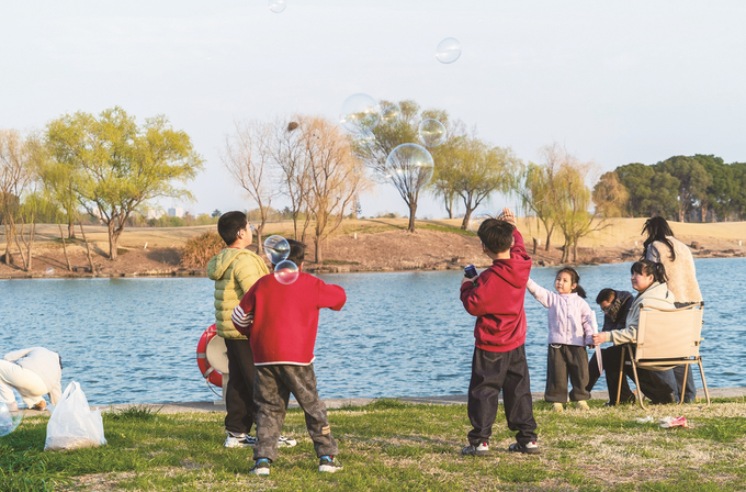 春意漸濃,蘇州工業(yè)園區(qū)金雞湖畔的大草坪上,市民游客攜親伴友踏青賞春,在湖光綠意間盡享愜意時光。