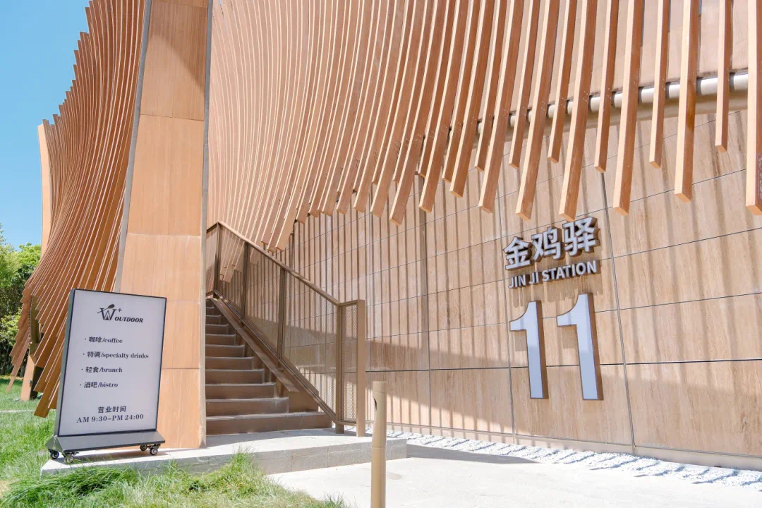 來到掩映在綠化中的金雞驛11,其以竹飾面漸變曲面呼應周邊雕塑,將自然野趣與高端體驗巧妙融合。作為戶外露營主題驛站,這里提供裝備租賃、探險咨詢與24小時補給,可滿足從新手到資深玩家的多樣需求。國際品牌也偏愛這片自然空間,“為愛奔馳”梅賽德斯-奔馳私享薈曾在此舉辦,參與者在享受精美茶歇的同時聆聽專業講解,高端體驗與露營氛圍巧妙融合,帶來獨特的輕奢體驗。