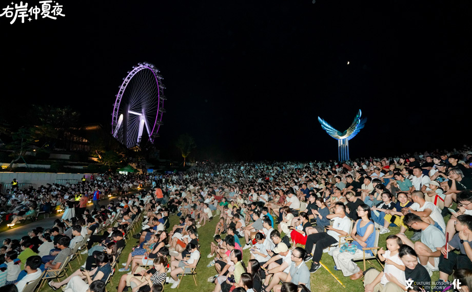暮色漸染,金雞湖面倒映著天際最后一抹霞光。右岸客廳下沉廣場早已人頭攢動,市民游客翹首以待—...