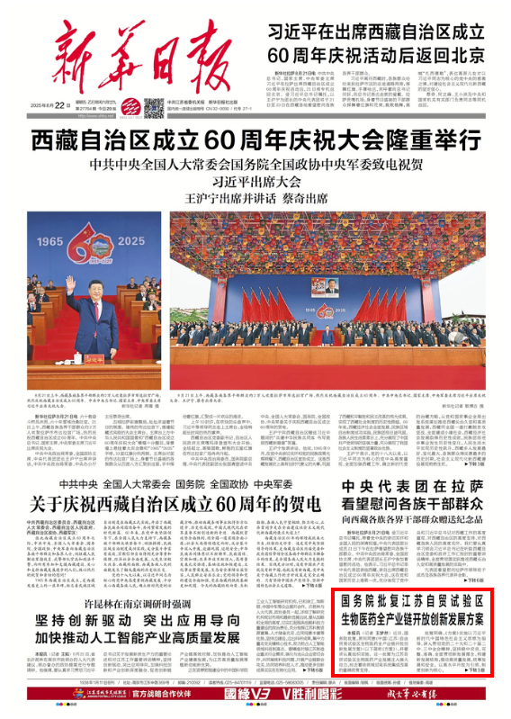 批復明確,《方案》實施以習近平新時代中國特色社會主義思想為指導,深入貫徹黨的二十大和二十屆二中、三中全會精神,堅持穩(wěn)中求進,完整、準確、全面貫徹新發(fā)展理念,構建新發(fā)展格局,推動高質量發(fā)展,統(tǒng)籌發(fā)展和安全。以高水平開放為引領、制度創(chuàng)新為核心,開展首創(chuàng)性、集成式探索,目標是將中國(江蘇)自由貿易試驗區(qū)打造成為具有世界影響力的生物醫(yī)藥產業(yè)集聚地和更具國際競爭力的創(chuàng)新發(fā)展高地。