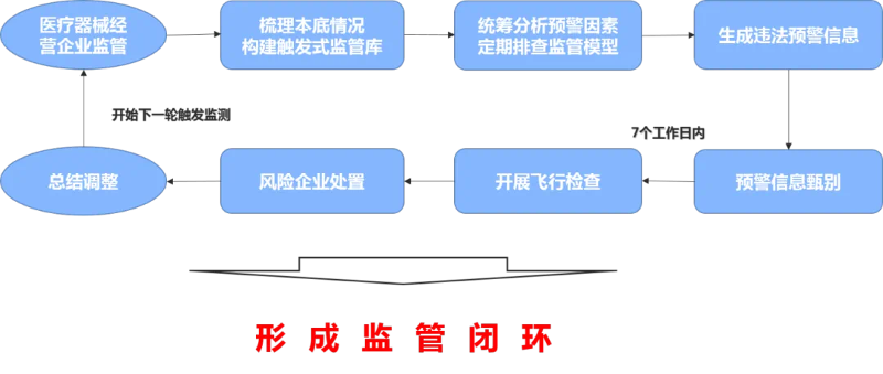 根據(jù)產(chǎn)業(yè)發(fā)展和監(jiān)管實(shí)際,按照“風(fēng)險(xiǎn)導(dǎo)向”原則,將觸發(fā)式監(jiān)管對(duì)象定位為主體數(shù)量多、監(jiān)管任務(wù)重的醫(yī)療器械經(jīng)營(yíng)企業(yè);重點(diǎn)聚焦年內(nèi)新備案的第二類醫(yī)療器械經(jīng)營(yíng)企業(yè),設(shè)置預(yù)警因素、建立監(jiān)管流程、明確處置方式,通過(guò)觸發(fā)式監(jiān)管降低風(fēng)險(xiǎn)隱患,引導(dǎo)企業(yè)合法合規(guī)經(jīng)營(yíng)。