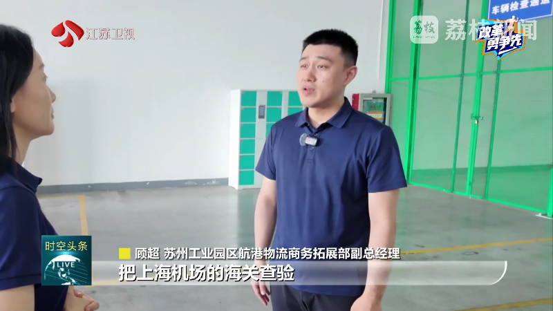 荔枝新聞中心記者尹美又說:“蘇州沒有機(jī)場(chǎng),貨物運(yùn)輸卻更方便了,怎么實(shí)現(xiàn)的呢?一起到全國首個(gè)跨省市、跨關(guān)區(qū)航空前置貨站來看看。”