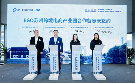 At the event, the Administrative Committee of SIP’s Jinji Lake CBD, SIP CBD Business Promotion Center, SIP-based real estate company Suzhou Industrial Park Urban Renovation & Development Co Ltd and Zhejiang EGO Intelligent Technology Co Ltd (EGO Group) signed an MOU to jointly create an integrated cross-border e-commerce ecosystem.