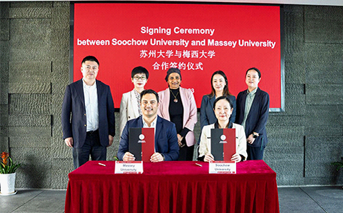Soochow University, a well-known Chinese comprehensive university with its Dushu Lake Campus built in SIP in 2004, and Massey University, a prestigious public educational institution in New Zealand, signed an agreement on Oct 23 to launch cooperation in talent cultivation, academic research, interactions between teachers and students, and other aspects.