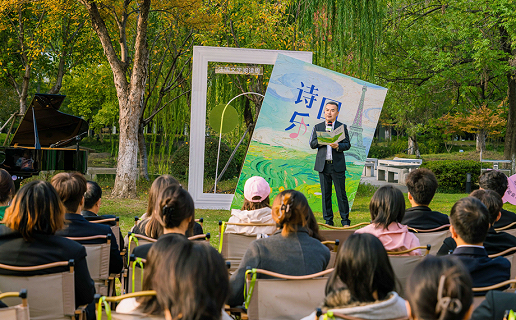 The lakeside recital session combined with literature, music, dancing and a French letter exhibition attracted lots of participants including college students and teachers, literature and art enthusiasts and tourists.