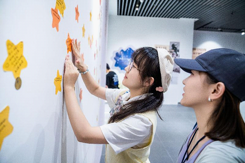 The artistic installation called “Gaze”, jointly created by Frédéric Baron, co-designer of the Le mur des je t’aime (“Wall of Love”) in Montmartre, France, Fei Zhixiong, a Chinese calligrapher, and Zhang Dalu, a professor at the School of Art of Soochow University, has become a new attraction at Ligongdi Cultural and Creative Block.