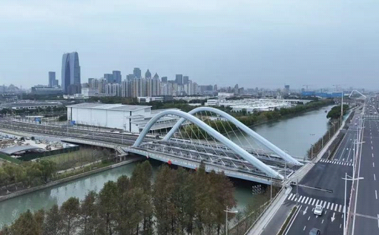 The north extension of Xinghan Street came into service last May. It is an about 400-meter-long two-way, four-lane road section between Loujiang Road and Suhong Road, including a 76-meter steel bridge across Loujiang River.