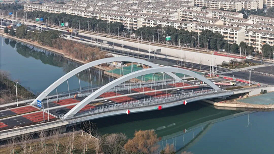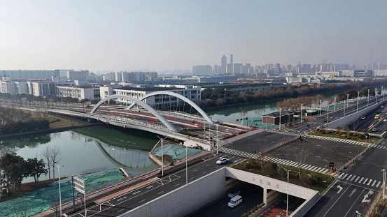 One starts from Jingdong Road in Shengpu Sub-district and extends eastward to cross the Jiepu River and connect with Zhonghuayuan Road in Kunshan, a county-level city neighboring SIP. Spanning approximately 520 meters, it features a two-way, four-lane design, including a newly constructed bridge over the river.