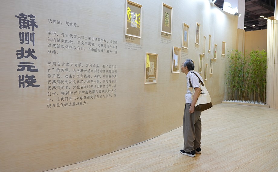 The cultural and creative products are eye-catching. Among them are metal bookmarks designed with inspiration drawn from windows in Suzhou’s classical gardens, notebooks integrating elements of traditional Chinese ink painting and silk tapestry weaving, and reading-themed toys.