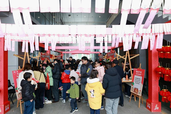 At Suzhou Industrial Park Urban Art Space, visitors admired exquisite lantern displays, and participated in riddle guessing in a lively atmosphere.