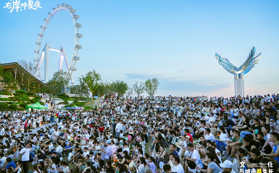 As the sunset glow painted the sky, the right bank of Jinji Lake was already filled with crowds eagerly awaiting the start of the “Summer Night in SIP” concert. The event, running from 7:30 PM to 8:30 PM, featured over ten beloved songs that resonated across generations.