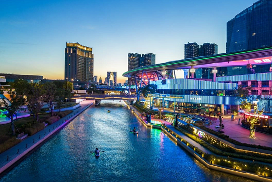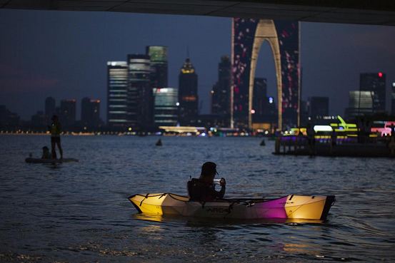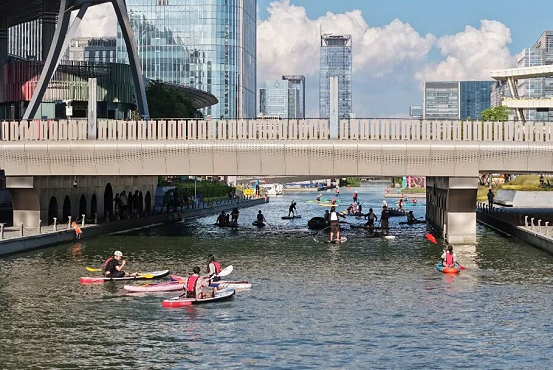 As dusk falls, the Central (Zhongyang) River in SIP is sparkling with fun! Since August 30, paddleboarding has become a trendy night activity for many people.