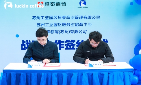 2月12日上午,蘇州恒泰商業管理有限公司與瑞幸咖啡(蘇州)有限公司在星悅匯舉行戰略合作簽約儀式,瑞幸星悅匯蘇南首家IP主題店同期開幕。此次聯動精準貼合當代年輕群體消費需求,進一步豐富園區潮流消費場景,共啟雙方合作共贏新篇章。