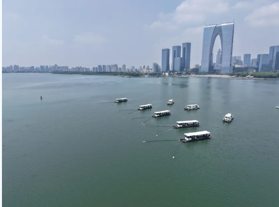 近日,市政服務(wù)集團(tuán)在金雞湖、獨(dú)墅湖、陽澄湖等重點(diǎn)水域開展2025年度藍(lán)藻防控應(yīng)急演練。本次演練以“多源突發(fā)、全域聯(lián)動(dòng)”為情景設(shè)定,模擬多處核心水域同時(shí)出現(xiàn)藍(lán)藻集聚。演練中,城維人員依托高空無人機(jī)巡航,結(jié)合巡視員開展全域巡查,迅速完成藻情發(fā)現(xiàn)和風(fēng)險(xiǎn)研判。精準(zhǔn)調(diào)度28艘專業(yè)打撈船只和120余人的作業(yè)隊(duì)伍快速響應(yīng),高效開展“巡查預(yù)警-調(diào)度指揮-打撈處置-無害化處置”全鏈條標(biāo)準(zhǔn)化作業(yè),為進(jìn)一步配合生態(tài)環(huán)境部門做好藍(lán)藻防控下好“先手棋”。