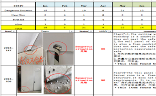 另一方面,公司鼓勵員工爭做安全“吹哨人”,只要在日常工作中發(fā)現(xiàn)安全隱患,即可第一時間拍照發(fā)送至公司微信群,由安全管理團隊每日對員工提報隱患進行篩選和確認,每周匯總形成《安全隱患排查追蹤落實表》,公示至安全角,接受全員監(jiān)督,大大提高了隱患發(fā)現(xiàn)的效率和準(zhǔn)確性。