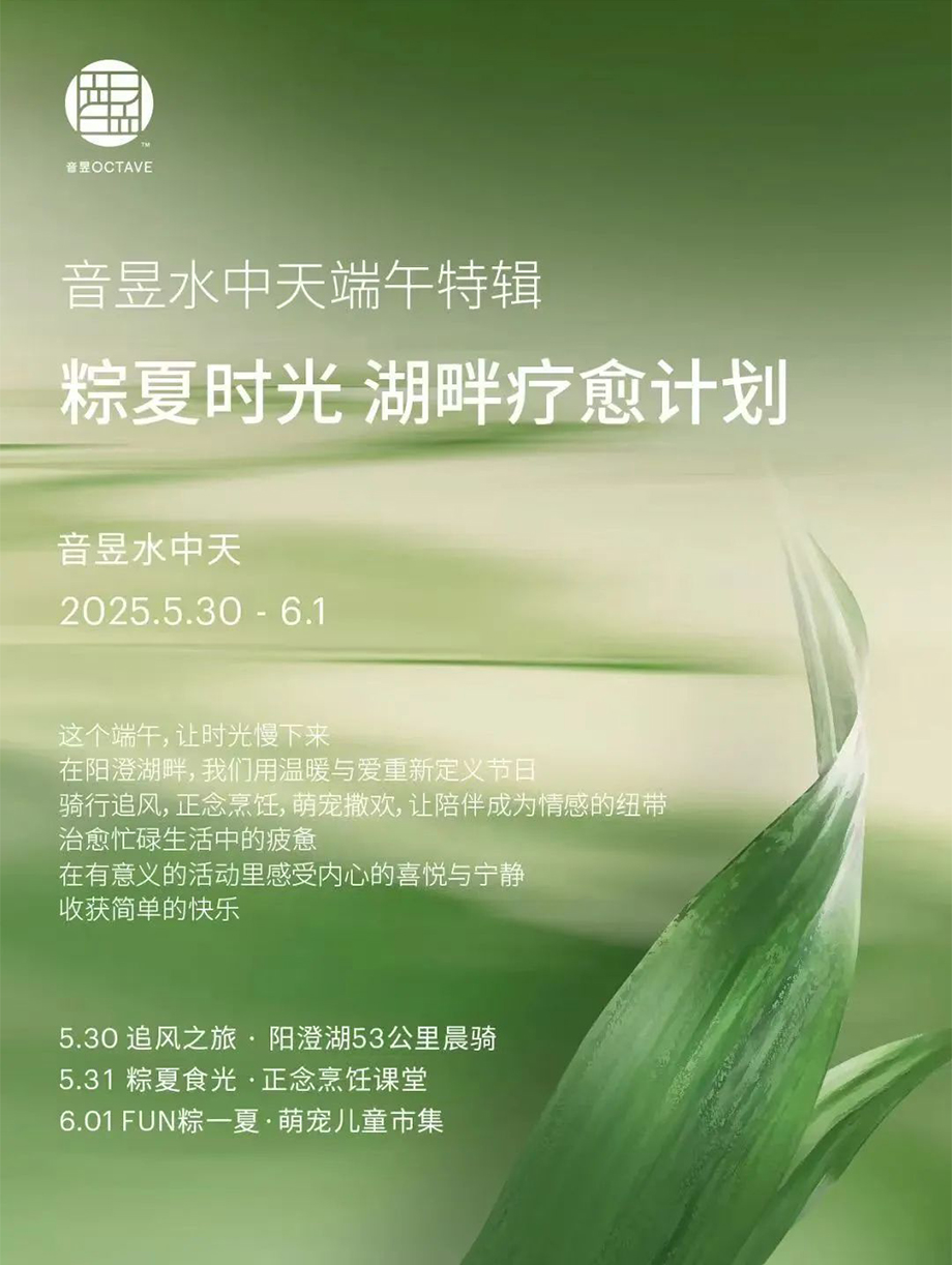 音昱水中天推出端午特輯“粽夏時(shí)光 湖畔療愈計(jì)劃”,邀你在陽澄湖畔騎行追風(fēng)、正念烹飪、萌寵撒歡,讓時(shí)光慢下來,讓陪伴成為情感的紐帶,在有意義的活動里感受內(nèi)心的喜悅與寧靜,收獲簡單的快樂。
