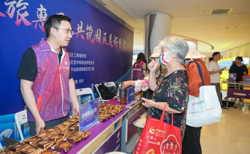 近期,園區宣傳和統戰部黨總支、蘇州陽澄湖半島旅游度假區黨工委和文旅產業鏈黨委成員單位攜手走進蘇州中心海棠服務站帶來特色文旅、傳統文化體驗等精彩服務吸引眾多市民前來體驗。