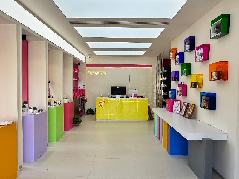 在重云巷入口不遠(yuǎn)處,采用多巴胺配色裝修的DPMUSE潮玩商店十分抓人眼球。這是一個從日常熱愛和青年態(tài)度中生長出來的品牌,它的名字也承載著雙重內(nèi)核——DualPassion(多重?zé)釔郏┡cDramaParadise(玩心樂園)。“我們通過色彩的搭配、大膽的設(shè)計,將抽象的‘熱愛’具象化,使產(chǎn)品不僅是物品,更是承載情感與記憶的‘關(guān)系禮物’——無論是運動搭子、二次元同好,還是鏟屎官社群,都能在這里找到屬于自己圈層的身份符號。”DPMUSE主理人朱逸琳介紹道。