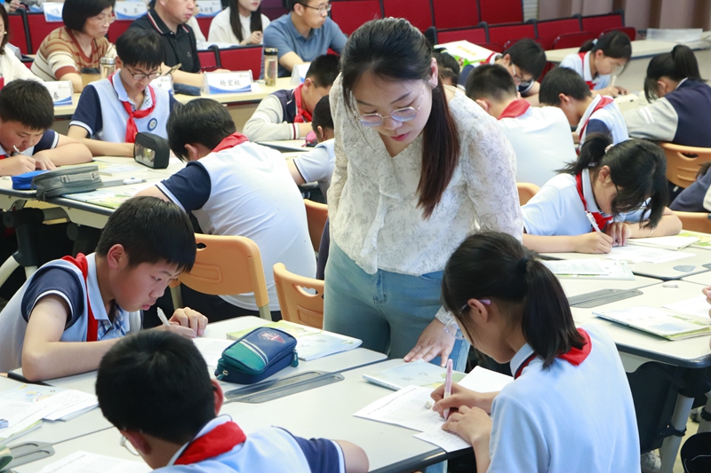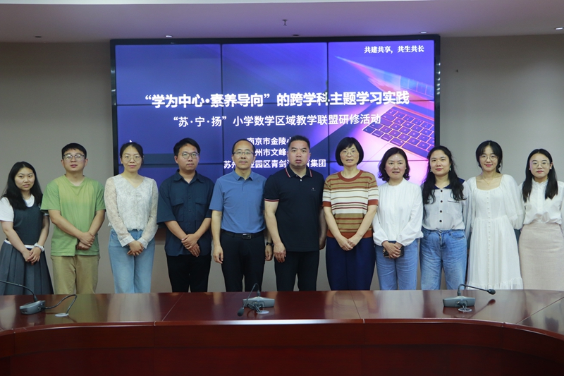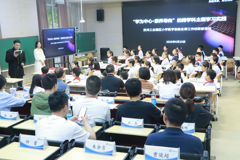 2025年5月23日下午,蘇州工業(yè)園區(qū)小學(xué)數(shù)學(xué)張敏名師工作坊第3次研修活動(dòng)暨“蘇·寧·揚(yáng)”三校小學(xué)數(shù)學(xué)區(qū)域教學(xué)聯(lián)盟研修活動(dòng)在青劍湖小學(xué)開(kāi)展,活動(dòng)以“學(xué)為中心·素養(yǎng)導(dǎo)向”的跨學(xué)科主題學(xué)習(xí)實(shí)踐為主題,張敏名師工作坊全體成員、南京市金陵小學(xué)數(shù)學(xué)團(tuán)隊(duì)、揚(yáng)州市文峰小學(xué)數(shù)學(xué)團(tuán)隊(duì)、青劍湖教育集團(tuán)各校骨干教師,青劍湖小學(xué)全體教師參加了活動(dòng)。
