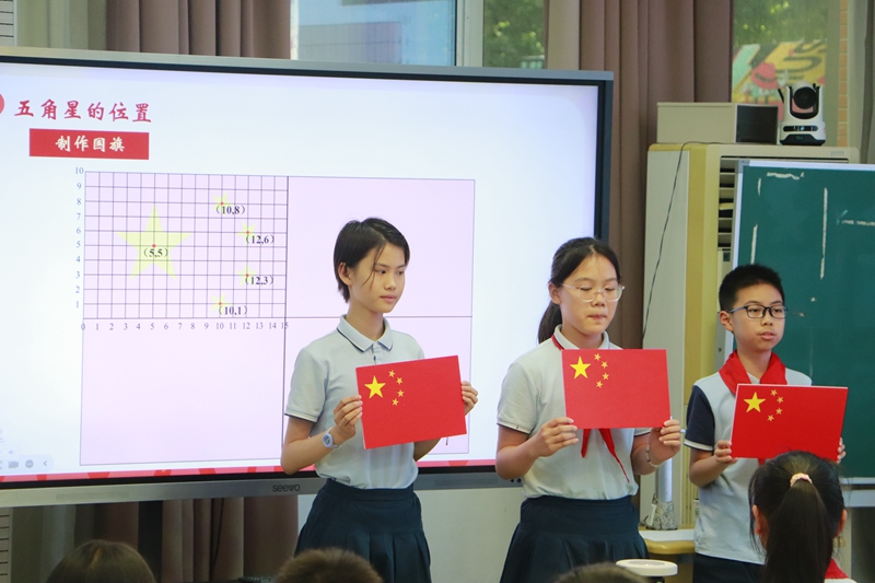 揚(yáng)州市文峰小學(xué)陳姝君老師執(zhí)教《數(shù)說(shuō)“中國(guó)紅”》,將數(shù)學(xué)與美術(shù)學(xué)科相融合,以國(guó)旗設(shè)計(jì)為主任務(wù),引導(dǎo)學(xué)生在“認(rèn)識(shí)國(guó)旗-設(shè)計(jì)國(guó)旗-制作國(guó)旗”的實(shí)踐活動(dòng)過(guò)程中,逐步培養(yǎng)學(xué)生的空間觀念、學(xué)科情感和家國(guó)情懷。