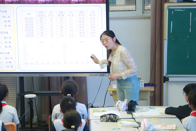南京市金陵小學(xué)張祎寧老師執(zhí)教的《數(shù)說(shuō)“抗日戰(zhàn)爭(zhēng)”》將數(shù)學(xué)與歷史學(xué)科相融合,通過(guò)對(duì)抗日戰(zhàn)爭(zhēng)中物資產(chǎn)量、兵力部署、傷亡比例等關(guān)鍵數(shù)據(jù)的深入分析,將歷史事件量化為可計(jì)算、可比較的數(shù)學(xué)問(wèn)題,讓學(xué)生在數(shù)學(xué)學(xué)習(xí)中銘記歷史、珍愛(ài)和平,使數(shù)學(xué)課堂成為歷史教育的生動(dòng)載體。