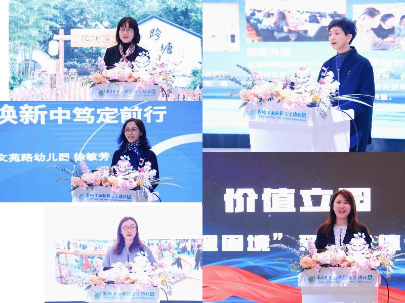 新時代的好幼兒園是什么樣的?新時代如何做一名好園長?在“園長說”環節,五位公民辦幼兒園園長代表圍繞話題分享了自身的思考與實踐跨塘中心幼兒園園長邵愛英講述了帶領老園不斷深耕內涵的探索,通過調研反思、教研改進等路徑,促使課程建設從“有形框架”走向“有魂實踐”;文苑路幼兒園園長徐敏芳圍繞園本“和樂”理念如何做好傳承與創新、如何與當下教育使命適配的深度思考,闡述了“人”為核心構建新型家園社協同共育關系、構建正能量生態圈凝聚教育合力的實踐歷程;新月啟元幼兒園園長李錚錚分享民辦幼兒園在“優質普惠”發展背景下,新質育人夯實內涵、以協同融合共促發展的持續探索;錦溪幼兒園園長吳臻圍繞制度共建人文關懷等內容闡述園所民轉公以來促使團隊從“兩股勁”擰成“一條心”的管理智慧;文景幼兒園園長曹圓圓分享了以“黨建+教育”深度融合打造教育引力場的創新實踐。五位園長真知灼見的分享既有實踐深度,又有情感溫度,讓大家見證了教育初心,更看到了她們帶領團隊破局的勇氣與智慧。