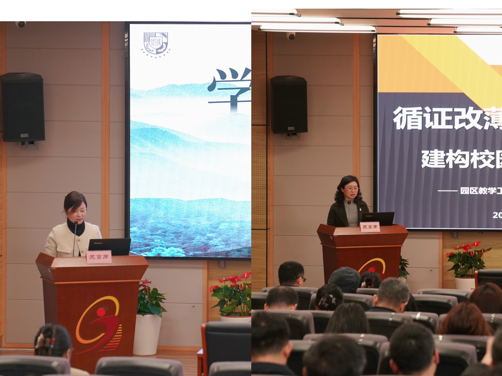 接著,兩所學(xué)校圍繞學(xué)業(yè)監(jiān)測(cè)結(jié)果的跟進(jìn)式改革作經(jīng)驗(yàn)交流。景城學(xué)校校長(zhǎng)張明劼聚焦一體化育人實(shí)踐,重點(diǎn)介紹學(xué)校緊扣幼小銜接、小初銜接兩個(gè)關(guān)鍵節(jié)點(diǎn),系統(tǒng)構(gòu)建并扎實(shí)推進(jìn)“景·行課程”體系的具體路徑。跨塘實(shí)驗(yàn)小學(xué)書記朱莉珍圍繞“循證改進(jìn)行動(dòng)”,深入闡述學(xué)校以課堂變革為核心、以“四學(xué)”路徑為支撐、以作業(yè)設(shè)計(jì)為抓手,著力打造校園生態(tài)學(xué)習(xí)圈、破解發(fā)展難題的務(wù)實(shí)舉措。